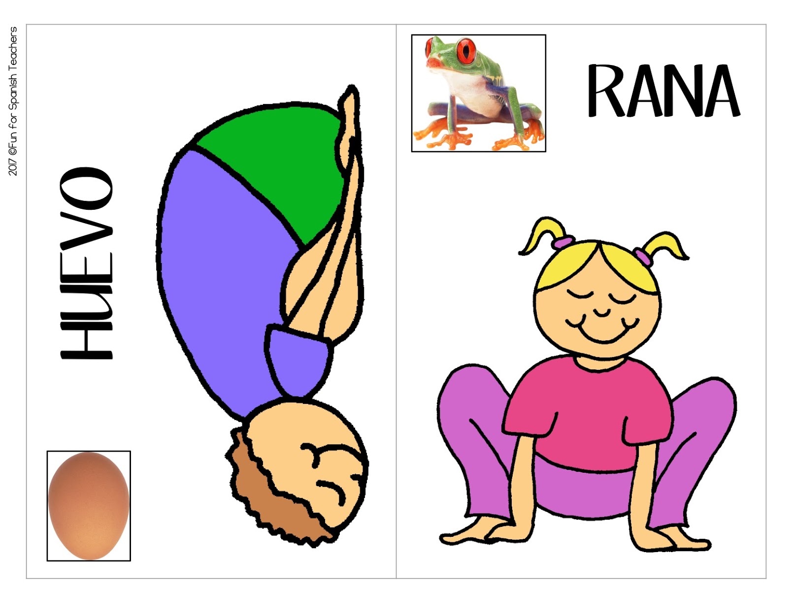 Yoga is an awesome brain break and energizer tool. I use a few Yoga poses in my classes to get my students moving and they love it. My students learn about 10 names of Yoga poses in Spanish and we use them throughout the school year. I use them as a quick way to make them move. We play “Simón dice” with them. We also play “Haz lo que digo”, for example. I say the name of a pose, but I show a different one, then whoever does the one I am doing is out of the game. They love it! We do it fast too! I like to use cards with the picture of the pose and the picture of what it means.